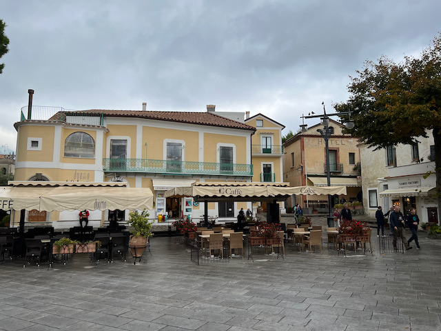 This morning the skies are overcast and rain is forecast. We decide to visit Ravello where even if it rains there will be things to do. Initially we are lucky. The rain holds off and we can order coffee in the main square and sit and watch the world go by.